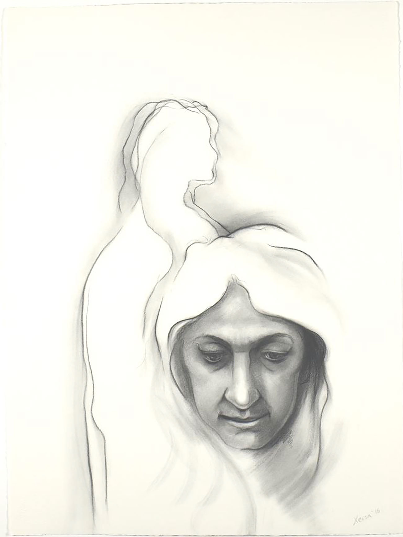 actions of the putti who reaches out, looking to the future realizing a message is there.